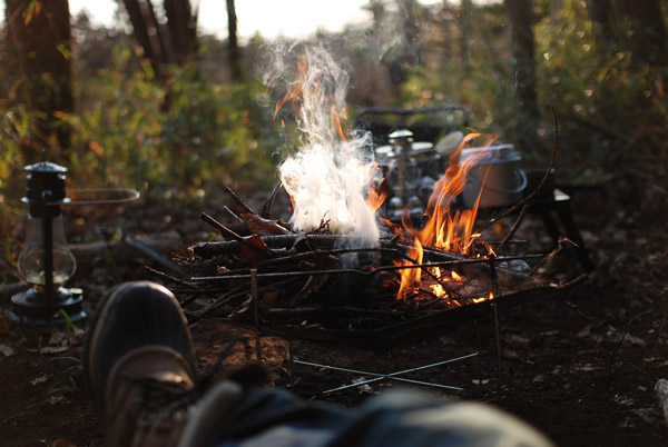人の手が入っていない山。テントを張るフロアの整地から始まり、荷揚げのルート開拓や薪の確保などなど。やる事盛り沢山で、くたくたのへろへろでしたが、キャンプ場では得られない何かがそこにはありました。