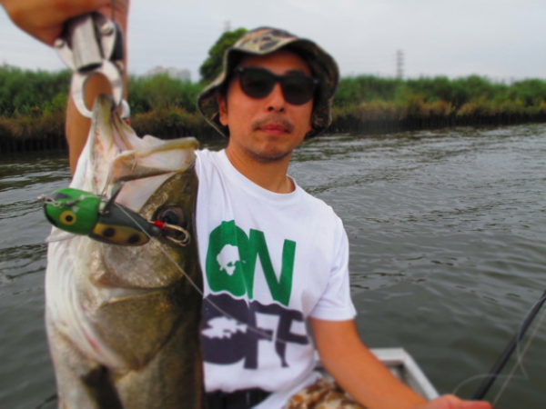 当人全くそんな事も考えず、釣れそ〜 ってな具合に動かしてたらメガバイト。トップウォーターの可能性が広がった?夏の記憶に残る魚でした。