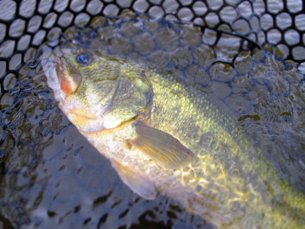 久しぶりのブラックバス。激流の中にいる強い個体は全身に脂を塗ったような独特のヌメリがある。こんな魚はこの時期しかとれない。