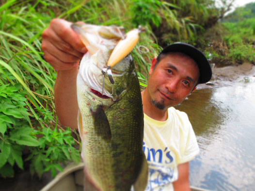 ただ巻きに高反応とみるや、すかさずOROLO.BMに変えての数分後。綺麗な夏バスいただきました。偉そうに語ってる風の写真ですが、実際に語ってます(笑)