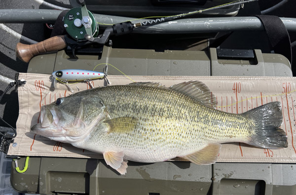 今年の初バスが釣れました。勝手にルアーをいじってスミマセン、、(ククロスのリアペラが付いてます)