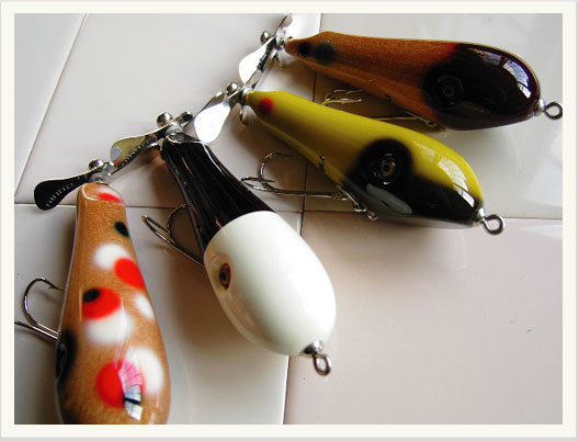 カバーで使えるシングルスイッシャーと言うのが最初の コンセプト。その為、ルアーの重さも軽く作ってある。 これは、蓮の葉や浮いている物の上にフワッと落とす イメージ。 オリジナルニンナペラによる水の抵抗を加工したテールで 受ける事によって、微量な振動や泡などを演出。 また、フロントにウエイトを入れる事により可能になった、 軽やかなターンも特徴のひとつです。